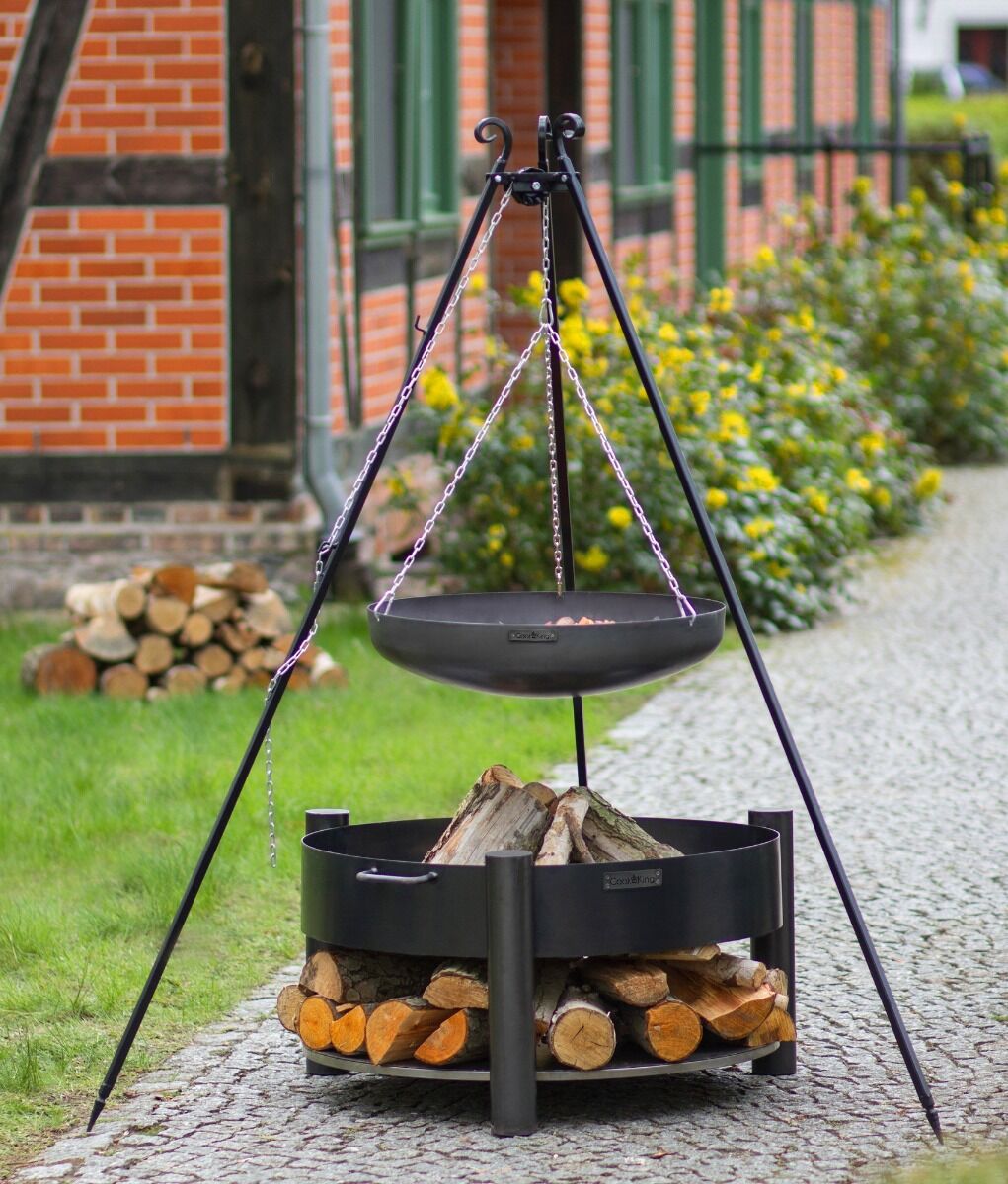Mit dem CookKing Dreibein 180 cm mit Wok 70 cm erleben Sie echtes Outdoor-Kochen in Ihrem eigenen Garten. Dieses stabile Dreibein mit hängender Stahl-Wokpfanne eignet sich ideal zum Kochen über offenem Feuer. Ob Schmorgerichte, Pfannengemüse oder Eintöpfe – mit diesem Set zaubern Sie im Handumdrehen ein rustikales Outdoor-Erlebnis.