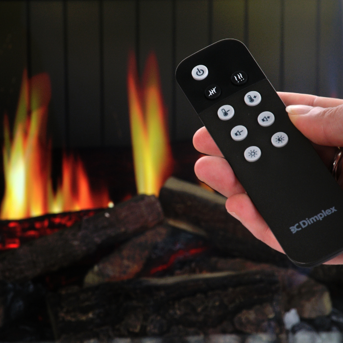- Kann am Kamin oder mit der mitgelieferten Fernbedienung bedient werden